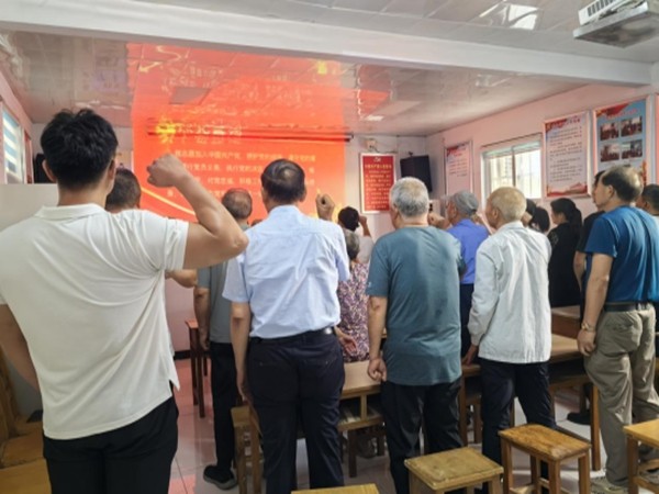 重温誓词守初心。活动伊始,在社区党支部书记的带领下,全体党员佩戴党徽,面向鲜红的党旗,高举右拳,庄严宣誓:“我志愿加入中国共产党……随时准备为党和人民牺牲一切,永不叛党!”铿锵有力的誓言在现场回荡,党员们以坚定的承诺表达对党的忠诚,重温入党时的热血初心,进一步强化了使命担当。