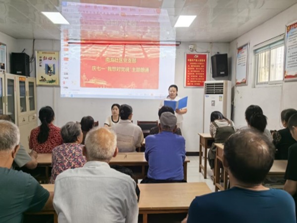 文章朗诵传薪火。重温誓词后,文章朗诵环节正式开启。社区党员代表们为大家朗诵了《庆七一,忆红色初心》《党在我心中,永远跟党走》。他们用真挚的情感、抑扬顿挫的语调,生动展现党的奋斗历程与辉煌成就,字里行间传递出对党的感恩与敬意。朗诵者的深情演绎引发全场共鸣,现场不时响起热烈掌声。