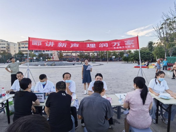 8月15日,漯河市郾城区孟庙镇卫生院宣讲小组第一组成员在孟庙镇时代广场开展“郾讲新声 理润万家”党的创新理论宣讲进基层活动, 同时启动了“家庭医生进村庄”服务,将理论宣传和健康服务送到群众身边。