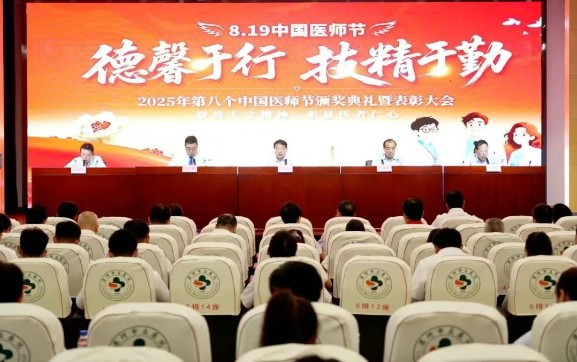 2025年8月19日是第八个中国医师节,主题是“德馨于行 技精于勤”。为庆祝第八个中国医师节,向广大医师致以崇高的敬意,展示优秀医师的风采,8月17日上午,漯河医专二附院(漯河市骨科医院、漯河市立医院)在门诊楼501会议室举办庆祝第八个中国医师节颁奖典礼暨表彰大会。该院领导柴运洪、王齐超、吴广良、曹鹏克、刘国锋出席会议,全院中层干部及医师代表参会。