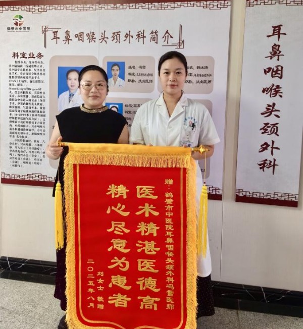 “医术精湛医德高,精心尽意为患者”,这是一位外耳道炎患者痊愈后,特意为鹤壁市中医院耳鼻咽喉头颈外科冯雪医师送来的锦旗。