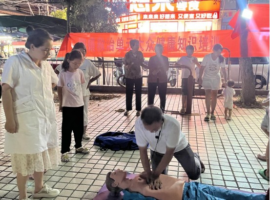活动现场,医师耐心地为每一位群众进行身体检查,从基本的血压、血糖测量,到细致的病症诊断,每一个环节都严谨认真。针对群众不同的健康问题,给出专业的治疗建议,还贴心地普及健康知识,解答日常生活中的健康疑问。周忠杰副院长亲自演示胸痛救治流程,张皓翔副院长在一旁详细讲解,让大家在直观中学习急救知识。