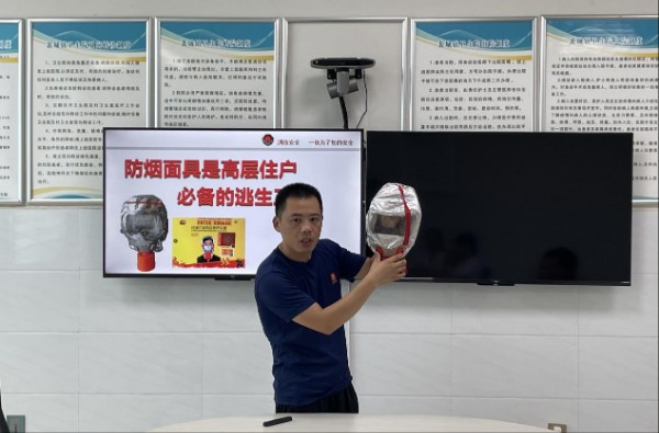 陶教官现场演示了各类灭火器、灭火毯、防烟面具等常见消防器材的正确使用方法,重点强调了使用不同消防器材时的注意事项和使用场景,确保在今后的实际操作中能够准确、有效、安全地发挥消防器材的作用。