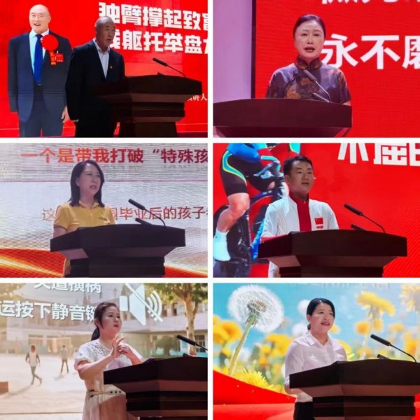 报告会现场通过短片与个人讲述相结合的方式,生动展现了六位来自不同领域代表的感人事迹。身残志坚的王生有带领家乡从破败山村变为美丽乡村,被称“当代愚公”。双目失明的张清玫带动300多名残疾人就业,用指尖触感“丈量”产品质量,成为“心明眼亮”的创业典范。郑州康园听力言语康复中心创始人张洛梅,该中心27年帮助万余名特殊孩子,减免学费百余万元。失去双臂的残疾人自行车冠军王献,用双脚在赛道上骑出了精彩人生。楚艳丽坠入无声世界后创办聋人活动中心,点亮数百个残疾家庭的希望。黄巧针从单腿舞者到基层残疾人专职委员,助200多个残疾家庭重拾尊严。