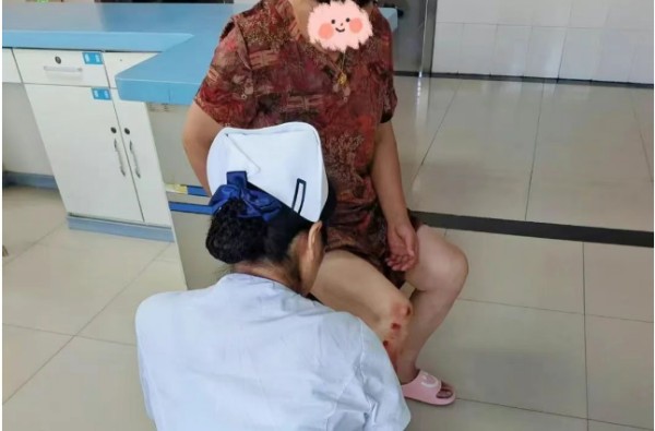 这份温情并非偶然。不久前,科室护士李真在日常巡视病房时,发现一患者家属右下肢体有多处擦伤,还伴有明显肿胀。她立刻取来护理用品,熟练地用生理盐水冲洗伤口,再细致地涂抹碘伏消毒。过程中,她察觉到家属因疼痛和担忧而流露的焦虑,便一边轻柔操作,一边用温和的语气轻声安抚,耐心讲解伤口护理的注意事项,反复叮嘱日常防护要点。家属紧紧握着李真护士的手,连声道谢,那双手传递的不仅是感激,更是医患之间深深的信任。