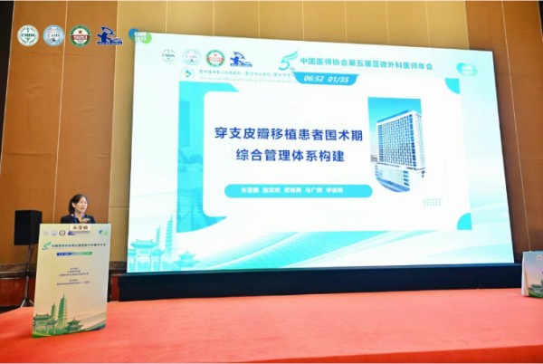 护士长朱亚楠讲授《穿支皮瓣移植患者围术期综合管理体系构建》的课题,将穿支皮瓣护理经验提升为科学管理体系。