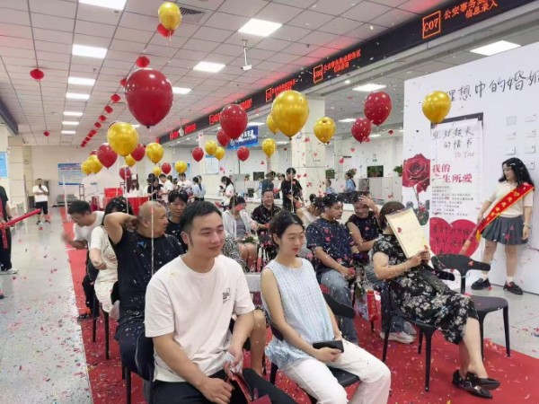 围绕“爱情延续、家庭幸福”,活动推进惠民服务:设“婚姻期许互动墙”收集新人留言;15对怀孕新人凭孕检证明领3600元“爱情延续礼包”(含月子中心体验),志愿者同步解读育儿补贴等政策;其余新人获“时光祝福卡”存入“时光信箱”,次年七夕领纪念品。4家商家提供盲盒礼品,实现“公益+商业”互动。