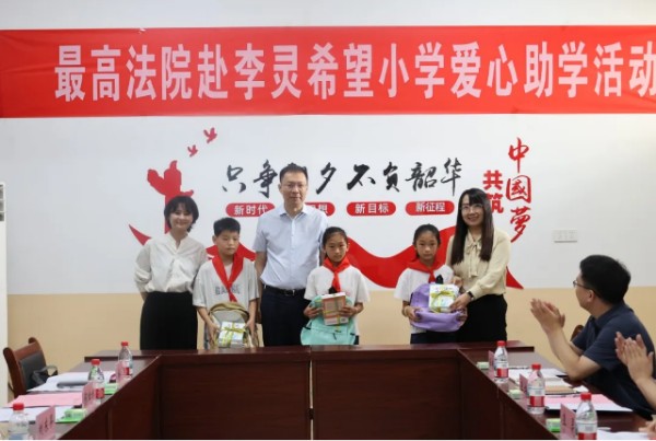 李灵希望小学由“感动中国”人物,全国人大代表李灵一手创办,多年以来致力于为农村孩子,特别是留守儿童提供优质教育环境,其事迹深深感动了全社会。最高人民法院办公厅第二党支部自2018年来将其作为定点联系与捐助对象,始终密切关注学校的发展和孩子们的需求。连续多年的持续帮扶,不仅切实改善了学校的办学办公条件,丰富了教育资源,更在一批又一批孩子心中刻下了法治的印记和社会的温暖,见证了从“有学上”到“上好学”的细微而深刻的变迁,体现了国家最高审判机关服务大局、司法为民的深厚情怀和责任担当。
