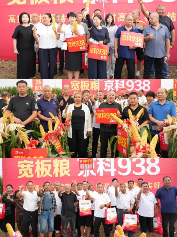 商水县代理商郝秀彩激动不已,京科938在商水县推广5年来表现优异,不仅稳产高产,一般亩产可达1600斤至2000斤,且抗逆性突出,病害发生少。无论是干旱、高温天气,还是遭遇大风大雨等极端情况,它都能保持较强的抗性,既不倒伏、不霉变,也不易生虫,真正做到“京科938,不挑天不挑地,种到哪里都争气”。为让更多种植户用上这一好品种,今秋计划开展100场观摩会!