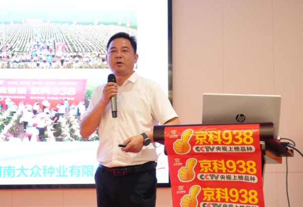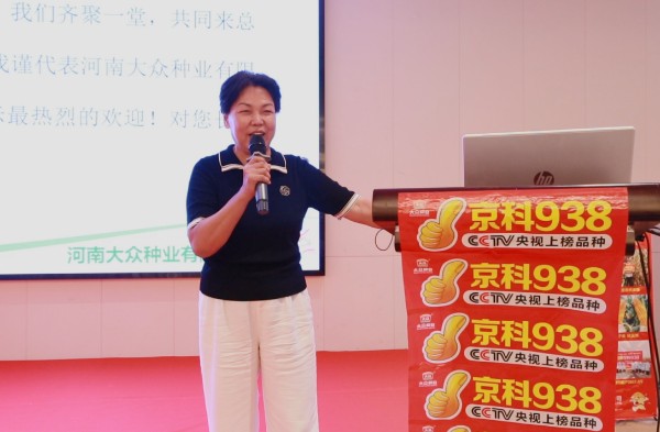 随着田间观摩活动结束后,大众种业总经理史利霞在室内会议上向大家分享京科938的推广成果与未来战略规划。她讲到,今年气候条件复杂多变,对农业生产带来了严峻挑战。然而,正是在这样的逆境中,我们共同见证了“京科938”的卓越表现——抗逆、稳产、高产,在多个区域已实现了高产突破,能被全国农技推广中心评为成长型优良品种,连续两年被国家黄淮海夏玉米密植精准调控技术即单产提升工程列为推荐品种。