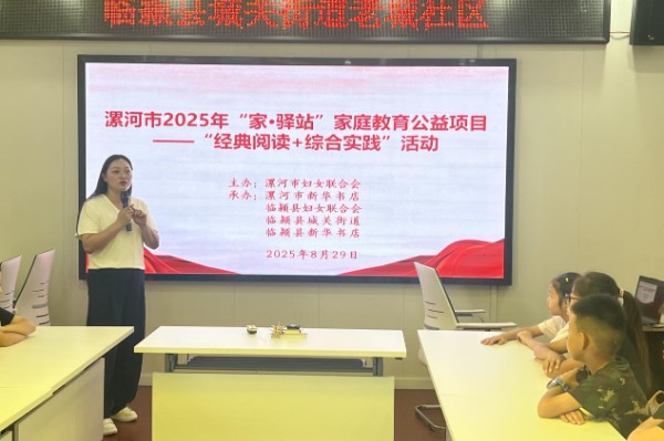 8月29日,由漯河市妇女联合会主办,漯河市新华书店、临颍县妇女联合会、临颍县城关街道及临颍县新华书店承办的漯河市“家·驿站”家庭教育公益项目——“经典阅读+综合实践”活动在临颍县城关街道老城社区成功举办。县妇联、城关街道、县新华书店、老城社区相关负责同志参加活动。20 余名儿童积极参与其中,通过观看防溺水教学视频、聆听绘本故事、开展实践创作等丰富环节,为暑期文化生活增添了浓厚色彩。