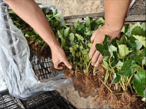 调研团详细询问了低温处理对草莓苗大小和品种选择、低温处理时长把控和不同品种对低温的耐受度差异、日常管理及冷库低温处理流程等情况,重点围绕低温处理对草莓花芽分化的影响及对草莓早上市时间和产量展开实地调研。在移栽棚,调研团重点查看了经过低温处理后草莓叶片舒展度和新根萌发情况,及移栽后水肥管理情况。