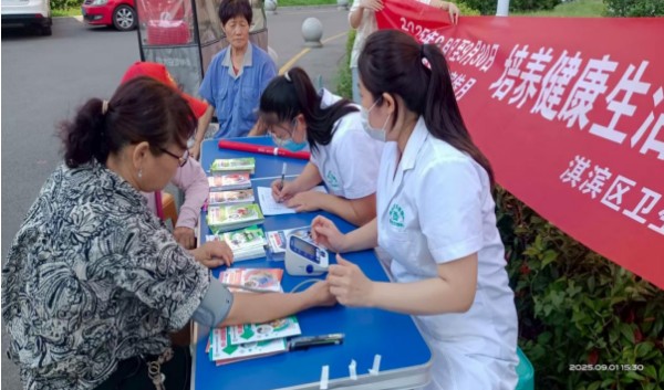 淇滨区疾病预防控制中心(卫生健康监督所)、黎阳社区卫生服务中心在市委三号院社区门口设置宣传台,通过现场讲解健康知识、提供咨询服务、免费测血压、血糖等形式,向居民传递“三减三健”理念,同时结合检测结果给出个性化健康建议,引导群众养成良好的习惯和生活方式。