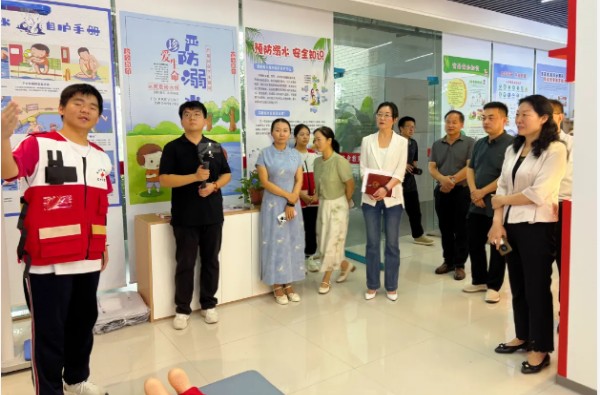 仪式结束后,参会领导参观了源汇区实验学校生命教育基地,观摩应急救护情况。市中医院急诊科主任李强、医师罗旋现场开展应急救护培训,通过“理论讲解+现场演示”的方式,讲授心肺复苏的应急救护技能。