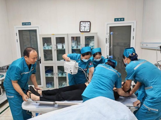 演练模拟120救护车接到指令后迅速驶向事故现场。现场评估、初步处理、安全转运……院前急救团队动作娴熟、分工明确。同时,急诊科内已通过信息化系统提前获知患者信息,迅速启动创伤救治绿色通道,抢救室人员、设备、药品即刻准备就绪。