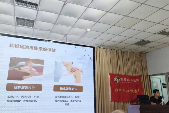 活动中,正骨科主任郭文江聚焦教师长期伏案易高发的肩颈椎问题,带来职业病防治专题讲座。他从发病原理、症状表现到日常预防进行细致讲解,还现场示范保健操,邀请教师互动学习,现场气氛热烈。