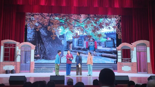 活动现场,灯光亮起时,饰演“犟媳妇”的演员甩着丈二红绸登场,豫东调特有的“倒卷帘”唱腔带着浓浓的生活气息扑面而来,一句“偏要分家另过活,看你老倔头能咋着!”瞬间让台下观众笑作一团。随着剧情推进,豆腐世家因“电动机替代传统石磨”引发的家庭矛盾逐渐展开,新旧观念的碰撞让现场观众频频点头。夏义高看着戏,还不时和邻座观众分享:“以前村里也有老辈守着旧办法不愿改的情况,现在看这戏才明白,互相体谅、跟上时代多重要。”演出间隙,像夏义高这样的道德模范们,主动和身边群众解读剧情背后的文明家风理念,原本单纯的观演,变成了一堂生动的移风易俗“课堂”。