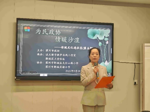 近日,漯河市郾城区淞江街道王堂社区热闹非凡,一场别开生面的“说文解字我来讲”主题活动在此温情上演。此次活动由淞江街道政协联络组联合漯河市政协及漯河市郾城区太行山路小学共同开展。漯河市政协委员、说文解字教学实践工作室主持人潘玲珂、淞江街道党工委副书记张丽娜、说文解字教学实践工作室骨干成员漯河市实验小学老师郭惠明、郾城小学副校长樊艳丽以及社区居民、师生代表共计70余人齐聚一堂,以汉字文化为切入点,将党的创新理论中“传承中华优秀传统文化”的内涵融入其中,为社区居民及师生代表带来了一场兼具知识性与趣味性的文化盛宴,也让党的创新理论宣讲以更接地气、更入人心的方式走进群众生活。