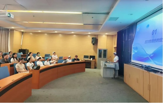培训伊始,压力性损伤/伤口护理学组会诊干预组长张燕燕老师带来关于《新型敷料在压力性损伤中的应用》的主题分享。她结合大量临床案例,细致讲解了各类新型敷料的材质特性、适用场景,以及压力性损伤不同分期对应的敷料选择策略、操作规范和效果评估方法。从水胶体敷料到泡沫敷料,从藻酸盐敷料到银离子敷料,张燕燕老师一一剖析,让参训人员对新型敷料的临床应用有了更精准、全面的认识,为科学选择和使用敷料提供了坚实理论支撑。