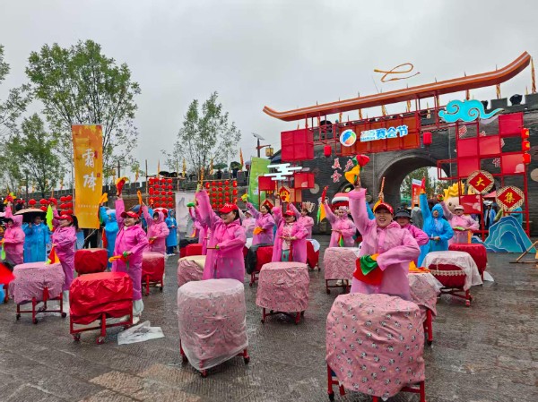 尽管活动当天秋雨绵绵,但丝毫未减群众的参与热情。开幕式现场处处洋溢着丰收的喜悦:金黄的谷穗、火红的辣椒串挂满围栏,成为最亮眼的“装饰”;各类地方特产美食香气四溢,引人驻足。农民艺术家们轮番登场,用多元艺术形式展现新时代农村风貌。音乐快板《趣说“赛会节”》生动解读活动创新理念,非遗展演《幡腾龙狮庆丰年》舞出五谷丰登的吉祥寓意,草帽杂技舞《田野律动》勾勒生机勃勃的丰收图景,歌舞表演《俺村最有戏》则跳出美丽乡村的幸福日常,精彩演出赢得观众阵阵掌声。