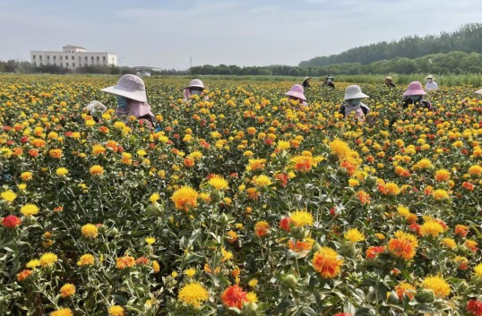 “科研创新必须紧扣产业需求。”梁慧珍介绍,研究所构建了覆盖全省的中药材种质资源库,保存野生与栽培种质21000多份。针对传统红花品种多刺难采、含油量低等问题,团队历时8年从800余份资源中筛选出286份优良株系,通过“单倍体-化学诱变复合育种”技术,成功培育出“豫红花1号”。该品种含油量达35%,较传统品种提升10%,且株高适中、分枝角度小,完美适配机械化作业。在2025年省生产试验中,其花丝和籽实产量分别较对照增产17.82%和21.65%,成为全国首个同时入选农业农村部和河南省农业主导品种的红花新品种。