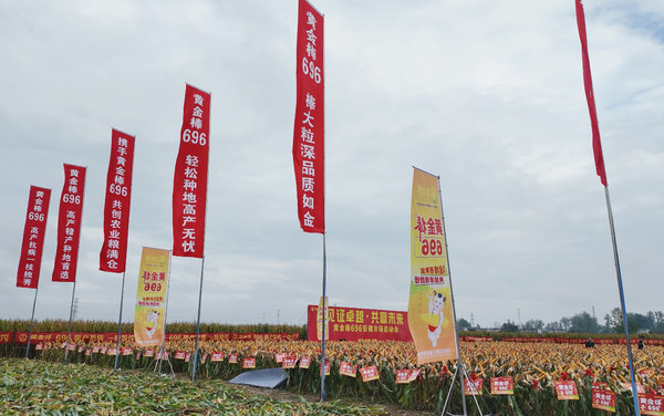 田间地头,“黄金棒696,高产稳产,种地首选”“黄金棒696,共创农业粮满仓”的彩旗迎风招展,仿佛在诉说着丰收的喜悦。随着鞭炮齐鸣,五色彩烟在空中绽放,寄托着人们对优良品种的期盼,也预示着又一个丰收年的到来。