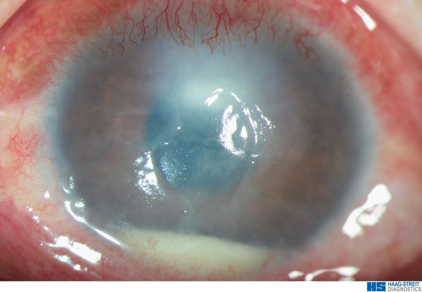孙大爷来自河南巩义,平日身体硬朗。不久前,农忙劳作时右眼不慎被划伤。起初只是轻微不适,孙大爷自行滴用眼药水后未予重视。然而几天后,情况急转直下,他的右眼出现剧烈疼痛、畏光、流泪,视力急剧下降至仅剩光感。当地医院确诊其为“真菌性角膜溃疡”,虽经积极抗真菌治疗,但因感染凶猛、就诊稍晚,角膜溃疡面持续扩大加深,中央区已濒临穿孔,医生告知唯一希望是立即进行角膜移植手术。
