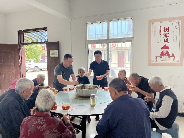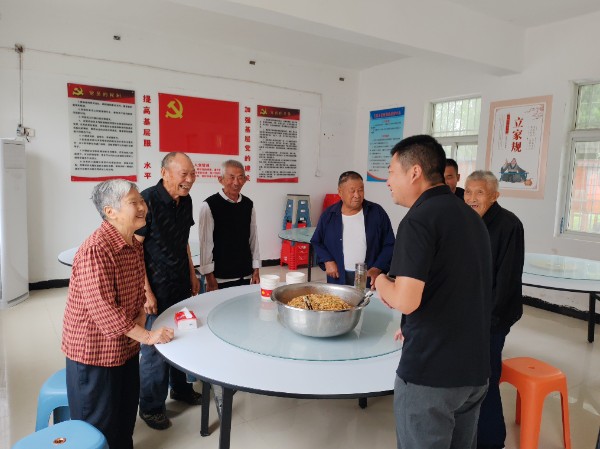 用餐时,村“两委”成员化身“服务员”,主动询问老人对饭菜的满意度,根据反馈调整口味。同时,这里也是老人们的“倾诉站”,大家有需求、有心事都愿意跟村“两委”成员说,工作人员耐心倾听、积极协调解决,既让老人感受到实实在在的关怀,也进一步拉近了村党支部与群众之间的距离。