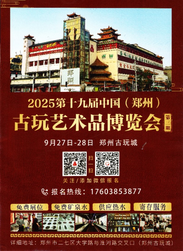 郑州古玩城文化惠民活动:9月27日、28日,举办“第十九届中国(郑州)古玩艺术品博览会”,展览古玩字画、珠宝首饰、民间收藏品等;还有“月满华诞 古韵新生——喜迎郑州古玩城三十周年文艺演出”活动,届时将邀请多位艺术家现场表演语言和戏曲类节目。