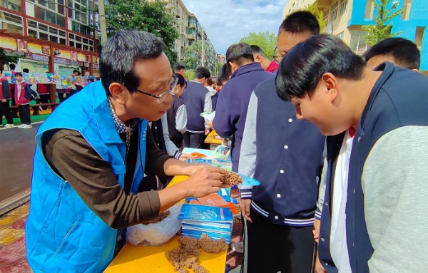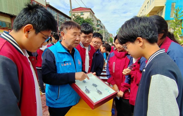 在昆虫标本展示区,河南省首席科普专家、舞钢市林业局高级工程师万少侠,用生动的案例向师生讲解昆虫的种类、生长习性、危害与防治知识;平顶山市首席科普专家、舞钢市水利局高级工程师李长伟,则以通俗语言科普水库河道白蚁防治、山洪灾害避险等内容,还现场发放饮水健康、节水知识等宣传资料750份。