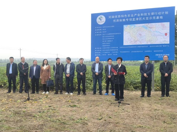 秋分已过,中原大地处处洋溢着丰收的喜悦。9月28日,“河南优势特色农业产业科技支撑行动计划”优质秋粮专项“大豆大面积单产提升技术示范与推广”现场观摩测产会在洛阳市孟津区会盟镇举行,与会专家与农户共同见证了科技给这片土地带来的变化。