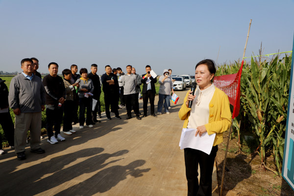 观摩活动启动前,新乡市种业发展中心主任李璐围绕活动目的与意义作出阐述,她指出,此次观摩既是对河南省玉米新品种培育成果的集中检验,更是为各地筛选适配品种、优化种植布局搭建桥梁;同时,她还结合实际种植需求,现场讲解玉米品种选择技巧及配套栽培技术,着重强调了玉米密植滴管精准调控技术,该技术是以增密种植为增产核心,运用滴灌水肥一体化设施条件,在玉米生长的全过程按需、分次、定向地供给水肥,为有效提高玉米种植密度提供了物质基础,为参会人员提供了专业指导。