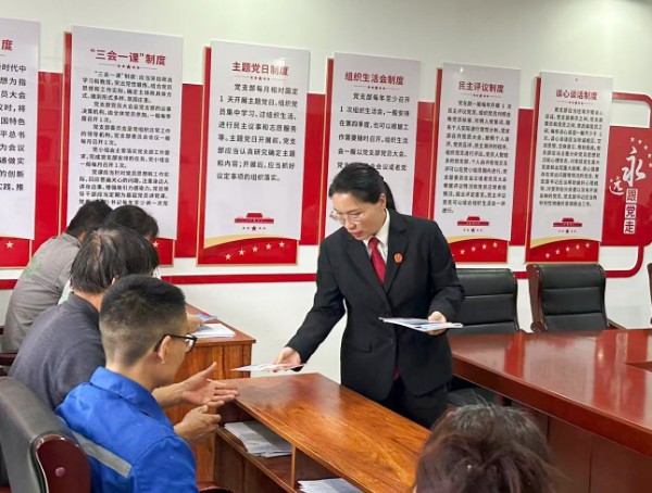 为积极回应人大代表对法院工作的关心关切,同时精准对接企业法治需求,助力营造公平、透明、可预期的法治化营商环境,9月28日下午,南阳市宛城区人民法院红泥湾法庭负责人郭凤香走进辖区南阳市新鑫缘建材科技有限公司,开展走访人大代表暨“送法进企业”活动,与宛城区人大代表、该公司总经理刘林深入交流,并为企业员工进行面对面普法。