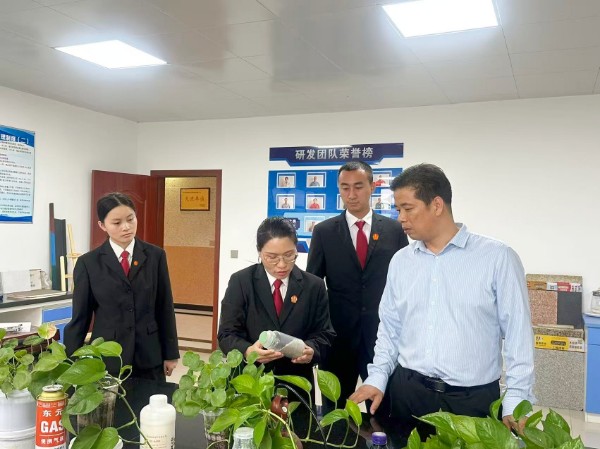 活动中,通过参观企业的生产厂区与实验室,以“看生产、听介绍、问需求”的方式,详细了解企业的发展历程、核心业务、经营管理现状,重点聚焦企业在产品生产、销售、用工管理等环节遇到的法律难题,逐一记录企业诉求,便于后续精准提供司法服务。