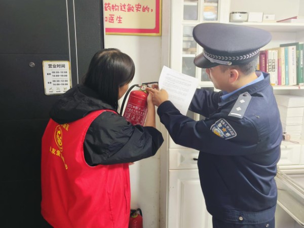在商铺安全排查环节,警网联合小组重点对辖区50余家商铺开展“地毯式”检查。民警重点检查消防设施是否完好、用电用气是否规范,网格员同步记录隐患问题、督促商户整改,对疏散通道堵塞、灭火器压力不足等问题当场指导,二者分工协作,无缝配合,确保隐患不过夜。