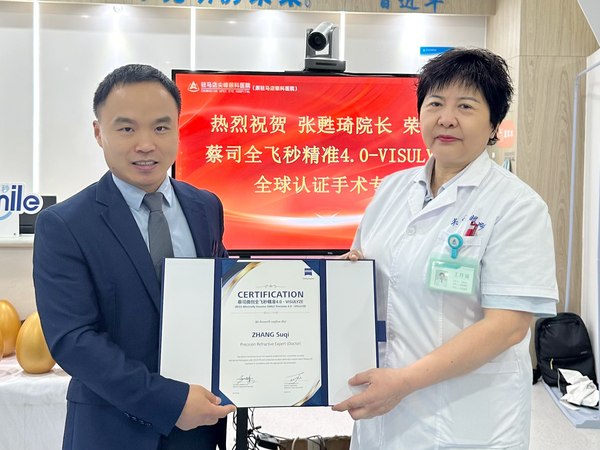 蔡司公司屈光高级患教专员何亚鹏出席活动,为张甦琦授予“全飞秒精准4.0-VISULYZE手术认证专家”及“全飞秒精准4.0-VISULYZE科普品质认证官”称号,彰显蔡司公司对张甦琦在屈光科普与精准4.0技术实践上的高度认可。