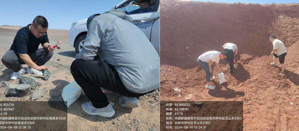 在“新瓷”的实验研发过程中,采集的原料种类中缺少了长石类与方解石类原料。为制备出原料全本土化的新瓷产品,梅国建院长协调技术组成员及产品设计组成员再次赴新疆开展原料筛寻及文化与产品类型的调研。2024年8月中旬,技术组成员在巴里坤县政府相关人员带领下,前往哈密南湖乡、东天山乡、西天山乡、巴里坤周边及吉朗德煤矿等处开展原料筛寻。此次共采集12类原料,其中包含黏土类(贫铁、富铁)、方解石类及长石-石英岩类,解决了釉料中主要助熔剂添加的问题。本次新增基础透明釉、火山红釉、青蓝釉等类型。团队产品设计组则奔赴新疆各级博物馆、企业、生活区等区域开展文化调研,为后期产品设计提供素材。