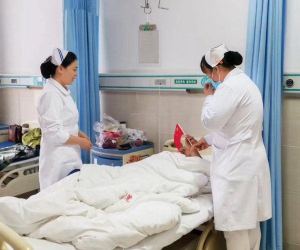医护团队手持鲜艳的小红旗,捧着精心准备的月饼,逐床走进病房。每到一处,都会叮嘱大家节日期间也要遵医嘱休息、按时用药,鼓励患者保持积极心态,耐心解答患者及家属关于术后护理、饮食调理的疑问。当小红旗递到患者手中,当香甜的月饼送到床前,一句句问候轻声响起,原本略显沉静的病房瞬间热闹起来,患者们脸上纷纷露出了笑容,不停地向医护人员道谢。
