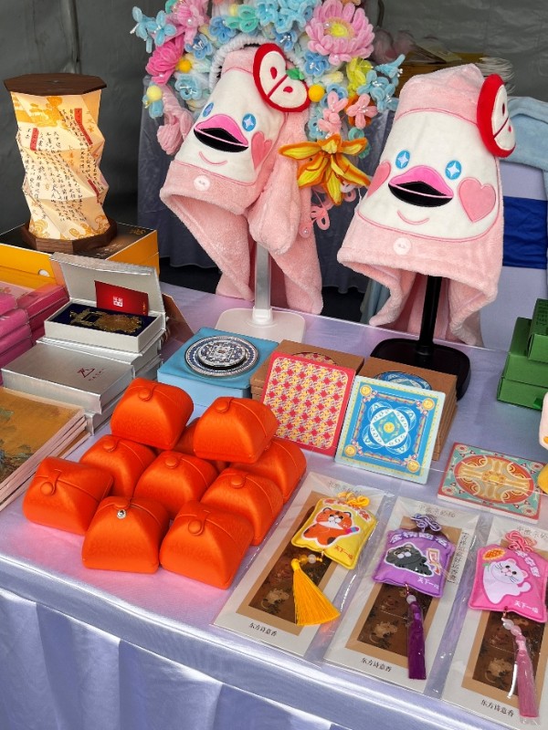 作为一家长期致力于城市品牌文化塑造、数字化文旅、文化产业投资等方向的文化创意型企业,他们选取赵孟頫书《道德经》及老子画像制成“哲思之光纸灯”,将宋徽宗赵佶《耄耋图》的可爱猫咪做成“香包车挂”,又以开封非物质文化遗产灌汤小笼包为灵感,设计出三种口味(鲜肉、荆芥、虾仁)的软萌毛绒挂件,深受观众喜爱。