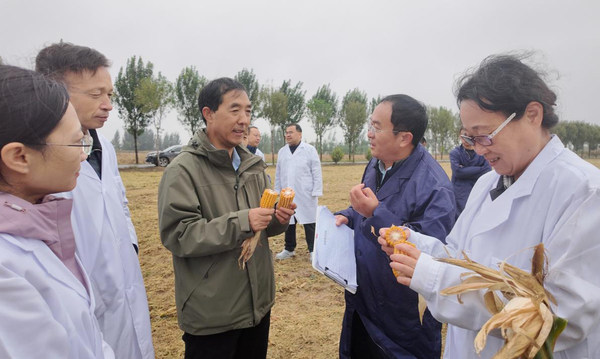 紧接着,专家团队一行来到玉米高产高效绿色种植试验田,实地察看了十余个品种以及不同种植密度的玉米示范,并围绕种植密度、水肥管理等关键技术问题,与现场人员进行了面对面交流和探讨。