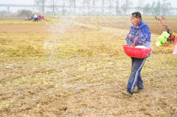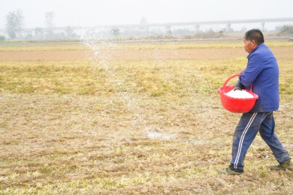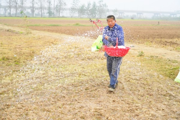 图为淮滨县桂花街道毛庄村一农户时正在田间施肥时的情形。