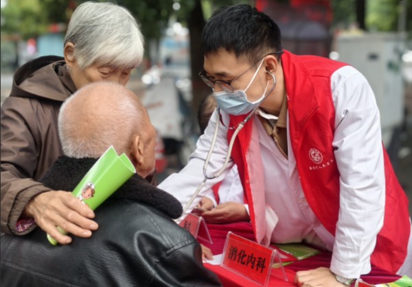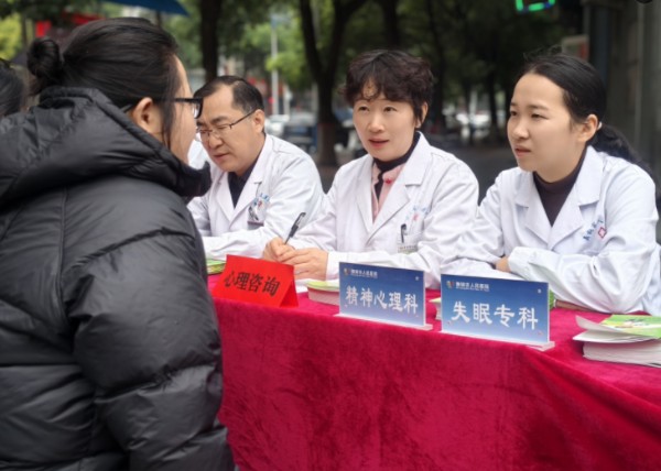 10月10日,舞钢市朱兰社区卫生服务中心门口,居民群众在就诊台前咨询、检查和说说“悄悄话”。当日,舞钢市人民医院神经内科、中医科、康复科、心理志愿服务团队等多位专家现场给前来咨询的居民的健康需要,宣传慢性病的预防知识,给予居民健康饮食、合理用药、运动锻炼等方面的建议,倡导健康的生活方式。免费为前来咨询的居民提供测血压、血糖等健康服务。义务进行心理健康咨询,解答精神卫生知识,为精神疾病患者及家属讲授治疗和康复方法以及预防知识。这是舞钢市开展主题为“人人享有心理健康服务”的义诊及宣传咨询活动的一个场景。