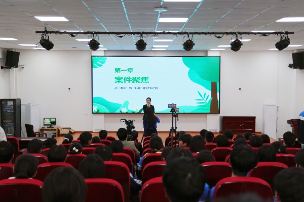 “面对任何‘轻松获利’的机会,务必先问自己三个问题:‘这是否违反常识与法律’‘对方为何平白提供好处’‘若出现问题,后果我能否承担’,一旦感到不安或犹豫,应立即停止操作并及时向老师、家长或警方求助!” 宣讲过程中,法官助理王硕结合案情开展普法延伸,从案件细节到风险分析,再到安全防护建议,用通俗易懂的语言、生动的讲解风格,揭开 “平台代理”“推广拉新” 等违法活动的伪装,剖析网络诈骗与不良信息的危害,引导师生通过坚守原则、学习法律、理性判断、增强自我约束能力抵御风险、远离违法犯罪,做网络时代的清醒者与守法者。