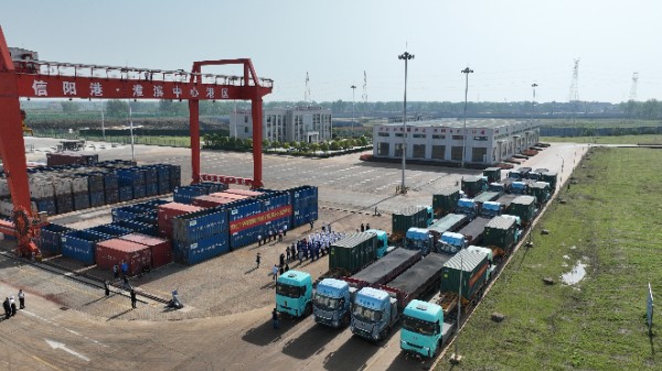 绿色理念同样延伸至港口腹地。近期,一批400Kw双枪直流一体式充电桩在港区物流园批量投入使用,为往来穿梭的新能源货车提供了强劲动力。今年4月,淮滨中心港至安钢集团信阳钢铁的新能源车辆公水联运低碳通道正式开通,为企业打造了一条时效快、成本低、绿色环保的运输新路径。