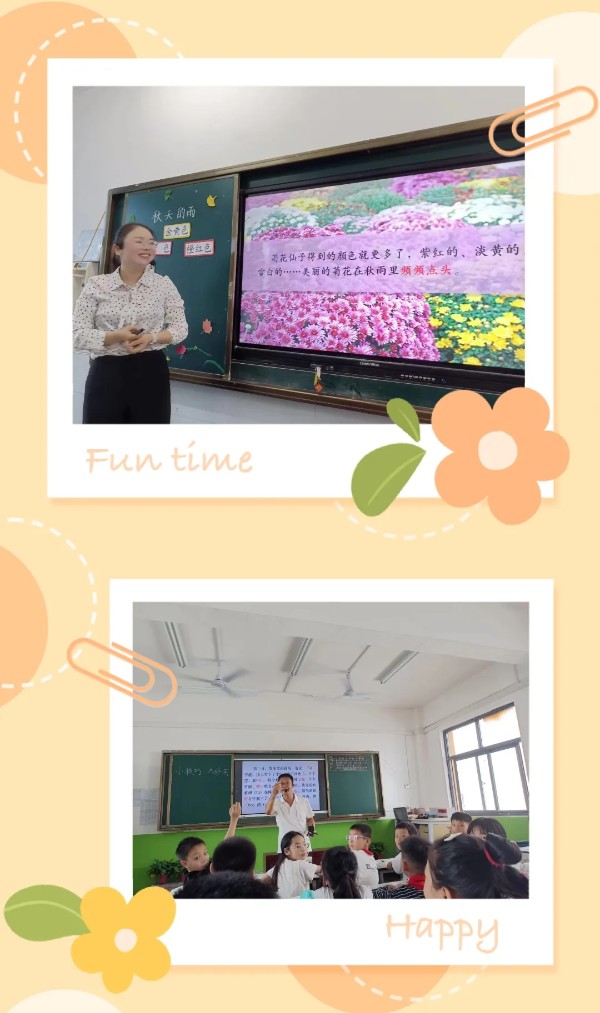 焦青瑞老师在执教《秋天的雨》中。从初读感知文本,精读品析秋天缤纷的色彩,到合作交流秋雨还会把颜色分给谁呢这一连贯的课堂实操,形成理解、赏析、创造的完美链条,有效兼顾了文本理解和表达交流、审美创造的综合提升。