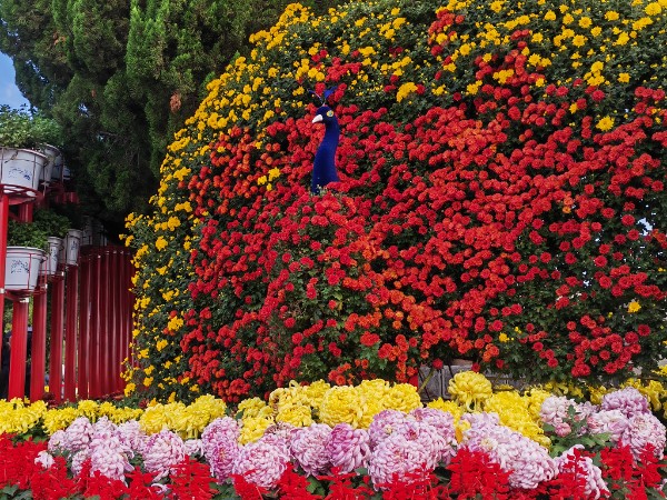 文化为魂,菊景相融唤醒古都记忆。布展设计始终锚定开封的文化根脉,让每一处菊景都带着宋韵底蕴。“祝福花篮”缀在街角,金黄花瓣裹着“喜迎国庆、菊香送福”的暖意;“菊韵宋风”造型立在古街,枝叶间藏着八朝古都的千年文脉;郑开大道、金明大道等入市口,大色块、大模块的菊景造景,既显视觉冲击力,又让城市风景线多了辨识度。游客漫步其间,赏的是菊,品的是大宋文化的厚重与风雅。