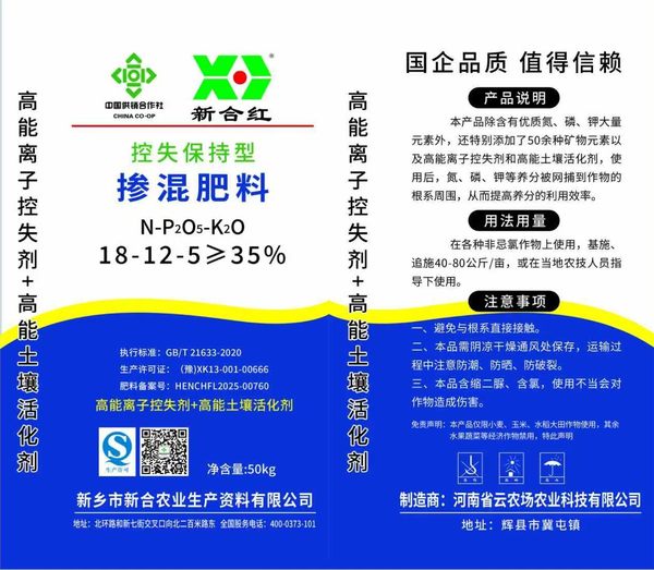 “新合红”控失保持型掺混肥料,由新乡市供销社新合农资公司控股的河南省云农场农业科技有限公司生产,秉承服务“三农”的宗旨,确保每一粒肥料都蕴含科技力量与品质承诺。