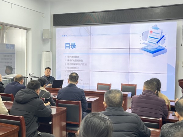 随后,区疾控中心(卫生监督所)副所长陈强重点围绕医疗机构执业相关法规、人员执业情况检查、医疗文书、抗菌药物管理等方面内容开展培训。通过案例解析与法规讲解,系统阐释了依法执业的要求,让参培人员深刻认识到依法执业对保障患者权益的重要性。