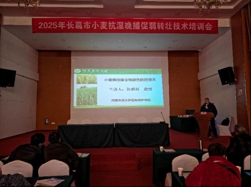 河南农业大学植保学院博士生导师孙炳剑教授则重点讲解了小麦病虫害的防治策略。他提醒,土壤湿度偏高会增加根茎类病害的发生风险,必须严格落实拌种包衣措施,采用“杀菌剂+杀虫剂+生长调节剂”的复合拌种方案,以精准防控苗期病虫害,并促进植株生根分蘖,提升抗逆能力。此外,他还针对连阴雨后可能发生的小麦条锈病、白粉病和赤霉病等病害,提供了及时的防治建议。