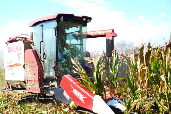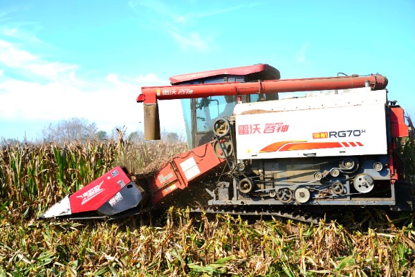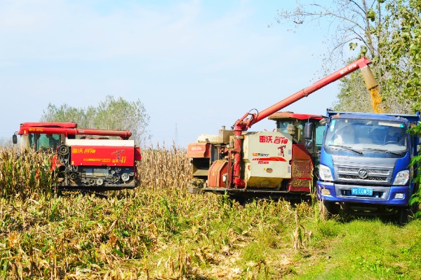 图为淮滨县新里镇种植大户邢德亮正在孙庄村抢收玉米时的情形。